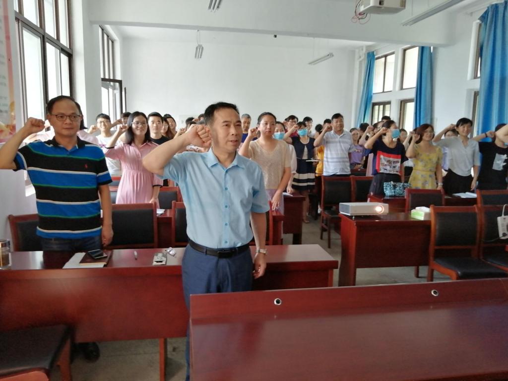 随后,学院党委书记凤杰带领全体党员干部重温入党誓词,对着党旗宣誓。