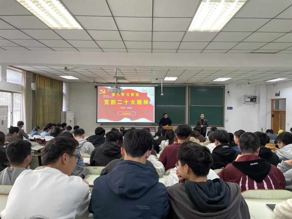 邀请校党委讲师团成员----马克思主义学院院长、教授高敏在佳山校区教三南102为学院全体师生党员宣讲党的二十大精神。会议由党委书记凤杰主持。