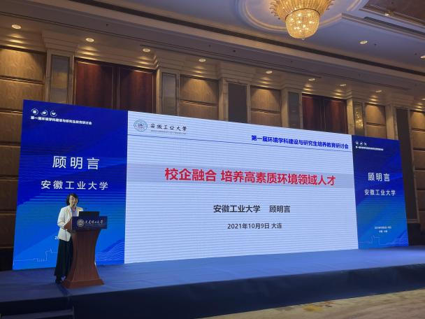9日上午大会开幕式后,分别由国务院学科评议组召集人贺克斌院士(清华大学)、城镇污水深度处理与资源化利用技术--国家工程实验室主任彭永臻院士(北京工业大学)、国家有机毒物污染控制与资源化工程技术研究中心主任李爱民教授(南京大学)等作了大会报告。下午各参会代表分成2个分会场,就立德树人成效与经验、学科建设成效与经验、学科发展现状与机遇以及研究生的课程与教材等主题进行讨论和交流。副校长顾明言在第一分会场作了题为“校企融合,培养高素质环境人才”的专题汇报。