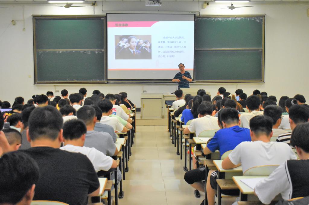 宣誓后,谢文平做了简要讲话,他要求同学们把参与网络文明建设、提高网络素养、捍卫网络安全看作是大学生网民义不容辞的责任,做到维护网络安全人人有责。