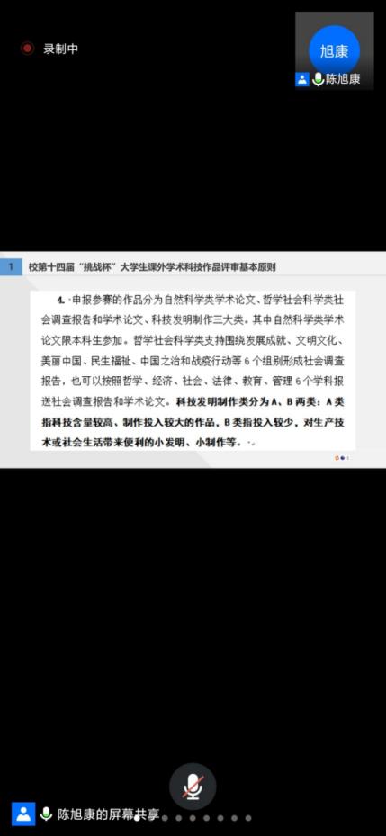 利用腾讯会议形式于线上举行了“挑战杯”大学生课外学术科技作赛启动仪式。启动仪式邀请了参赛经验丰富的陈旭康同学进行参赛经验宣讲培训,肉视频AV