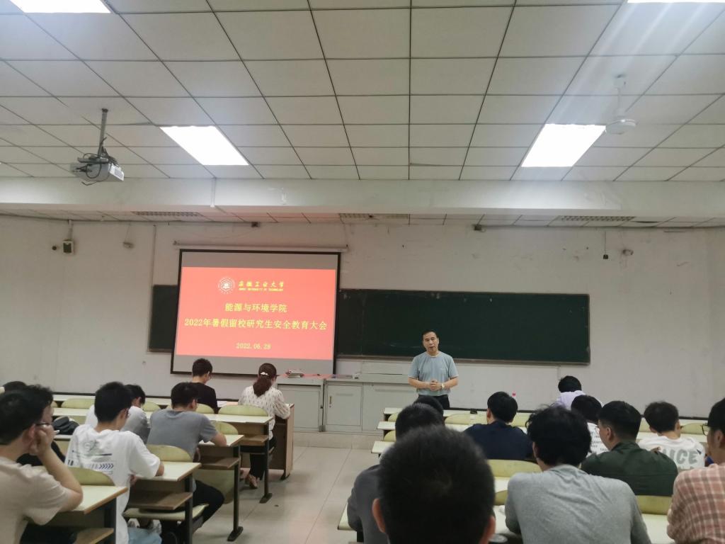 为切实做好2022年暑期留校研究生的安全教育工作,维护假期校园安全,提高留校研究生的安全防范意识。6月27日上午,学院在佳山校区教三南103召开研暑假留校研究生安全教育大会。学院党委书记凤杰、副院长楚化强、研究生辅导员以及全体留校研究生参加本次会议。