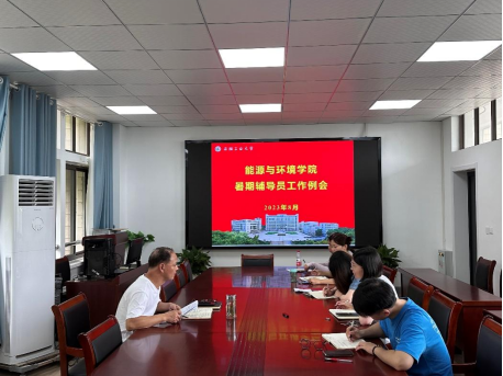 在能源楼325召开暑期辅导员工作例会,院党委书记谢文平部署新学期相关工作,全体辅导员参会。