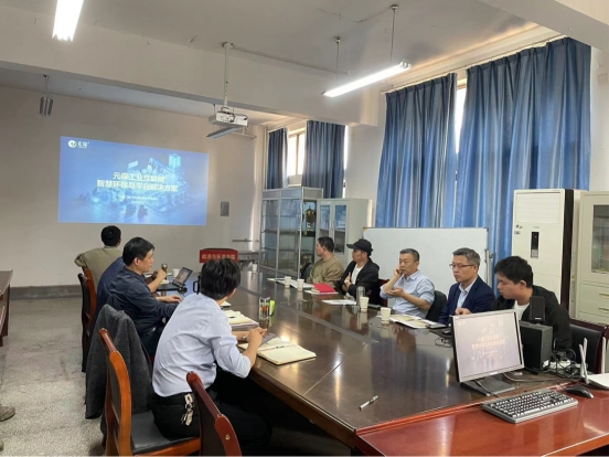 徐辉董事长介绍了元琛环保科技公司创办和发展的历程,公司信息中心负责人介绍了“环保岛”的相关信息以及它们的服务功能,并就校企进一步深入合作表达了强烈的意愿。
