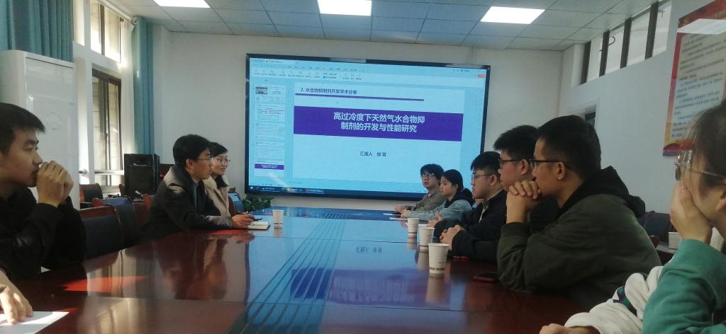 新进教师邹雪博士作了“高过冷度下天然气水合物抑制剂的开发与性能研究”的学术报告,报告会由科研副院长楚化强主持,相关师生参加了报告会。