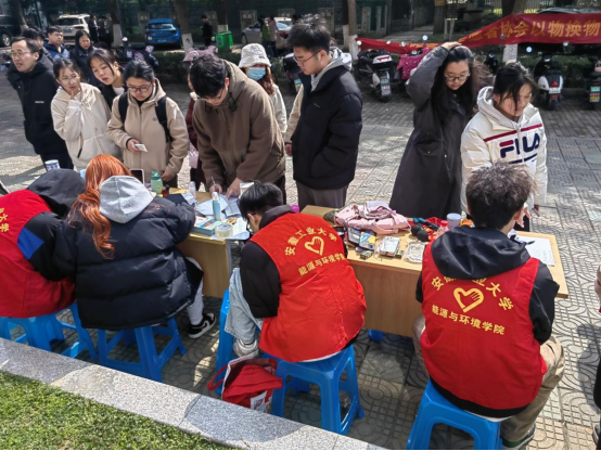 青年志愿者协会于第三食堂前开展雷锋月“以物换物”活动。
