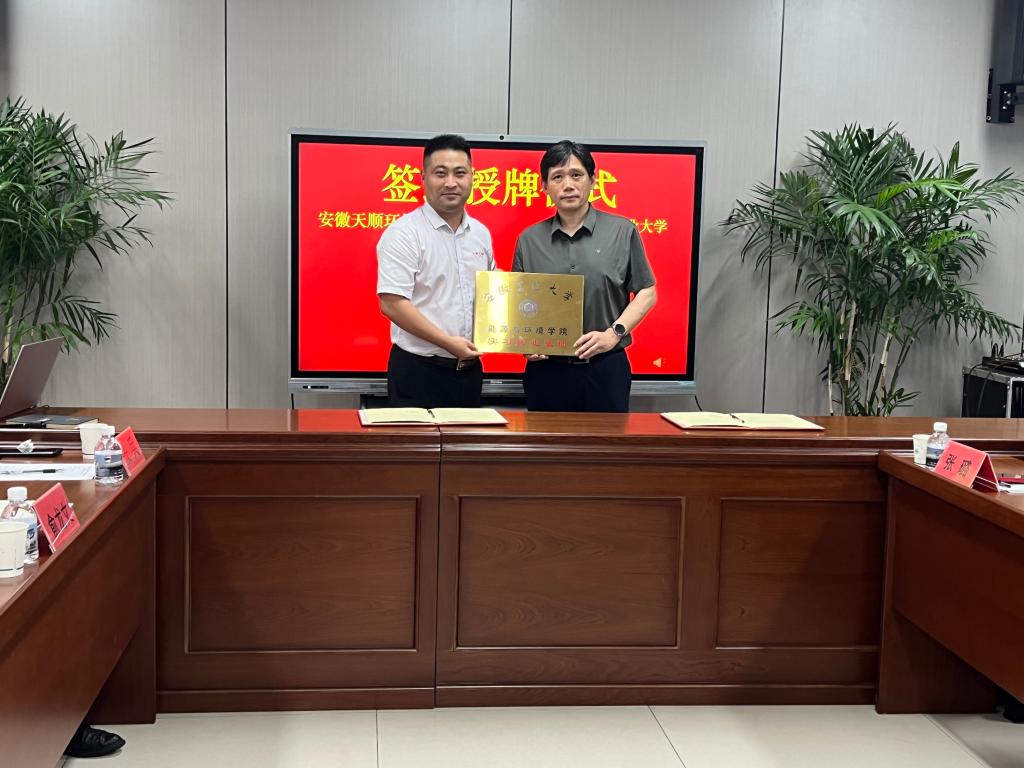 于6月21日下午赴安徽天顺环保设备股份有限公司访企拓岗,举行“大学生就业基地”签约暨授牌仪式,学院领导班子成员、各系主任、辅导员和六名毕业生代表参与此次活动,含山经济开发区管委会领导和安徽天顺环保设备股份有限公司负责人出席并参与相关活动。