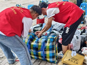 青年志愿者协会在佳山校区五号宿舍楼下开展军训服回收志愿活动。志愿者们发扬了“节约奉献,绿色校园”的精神,用自己的实际行动展现了当代青年的社会责任感与奉献精神。