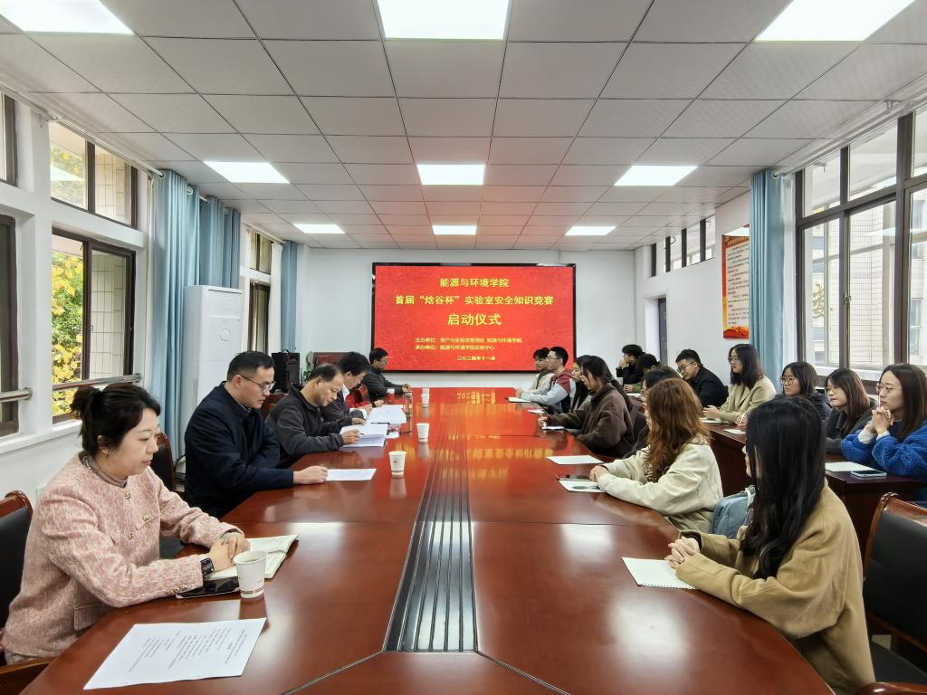 首届“焓谷杯”实验室安全知识竞赛启动会。学院党委书记谢文平、资产与实验室管理处副处长汪尚兵、学院实验中心主任王双、副主任殷国霞、学院优秀校友、安徽焓谷工程技术有限公司绿色制造部部长邵晓骐以及学院研究生代表出席了本次活动,会议由学院副院长楚化强主持。