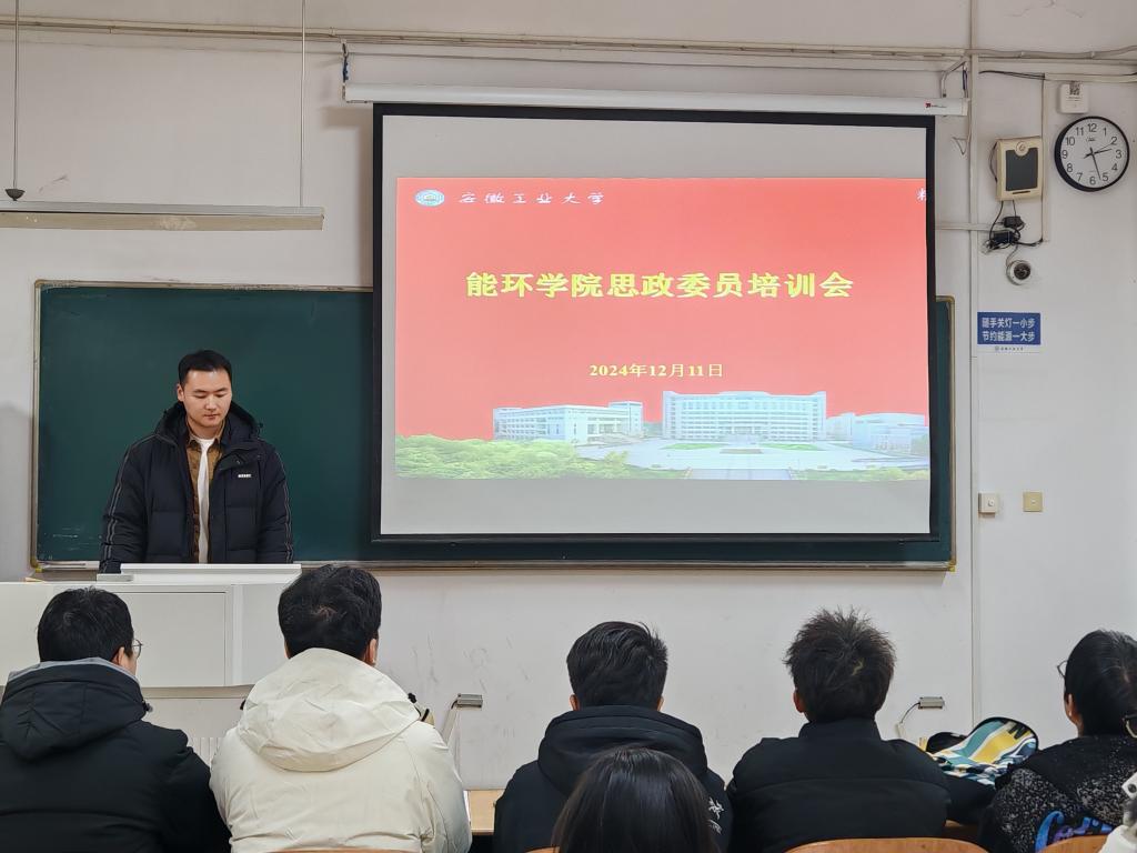 于2024年12月11日在教三北115举行思政委员培训会,集中观看2024年全省高校班级思政委员专题培训视频直播。学院全体思政委员参加培训会,会议由院团委书记沈厚发主持。