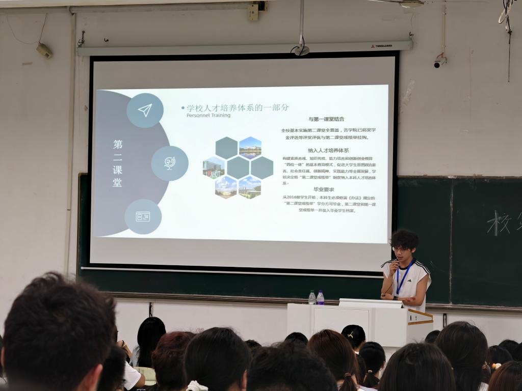 的新生们迎来了一堂特别的“入学课”。9月14日晚七点,教三南203教室里座无虚席,一场关于“到梦空间”第二课堂平台的宣讲会在这里举行,为2025级新生揭开了大学课外学习与实践的第一章。