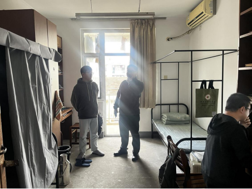 走访过程中,卫军帅认真检查了各宿舍的消防卫生安全状况,对整体环境维护情况给予充分肯定,并就细节问题提出了改进建议。在与研一同学的交流中,他细致地询问了同学们的家乡所在地、入学后的生活适应情况以及目前遇到的困难,耐心倾听大家的反馈,并鼓励新生们尽快融入新的学习和生活环境,夯实专业基础,合理规划研究生阶段的学习与生活。