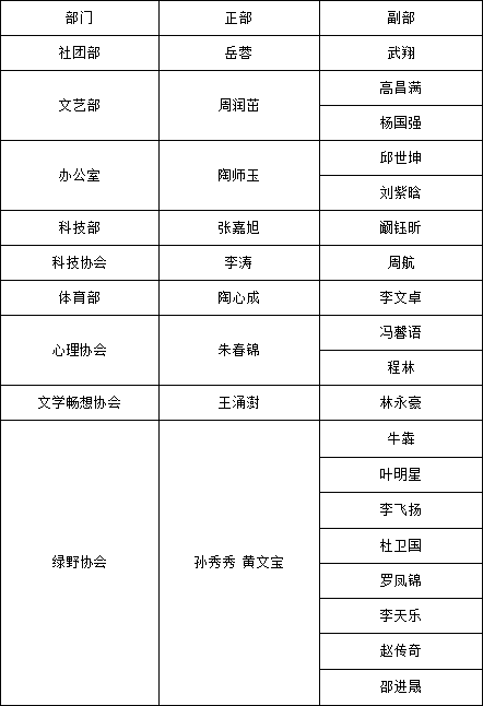 肉视频AV 第十二届团委学生会主要学生干部名单